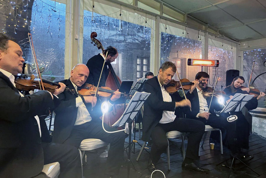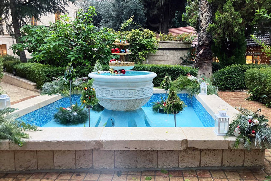 Центральный фонтан и сад были украшены в стилистике русской новогодней традиции, что придало древним стенам ощущение тепла и праздника.