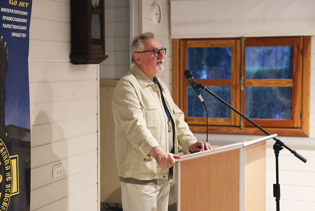 Сергей Житенёв представил историческую панораму Общества и напомнил, что его создание в 1882 году было результатом не только указа императора, но и инициативы группы выдающихся деятелей — архимандрита Антонина (Капустина), Василия Хитрово, графа Евфимия Путятина и великого князя Сергия Александровича. Житенёв рассказал о «золотом веке» ИППО до 1917 года: паломничествах и развитии Русской Палестины, создании сети школ для арабских детей и просветительской работе в Российской империи.
