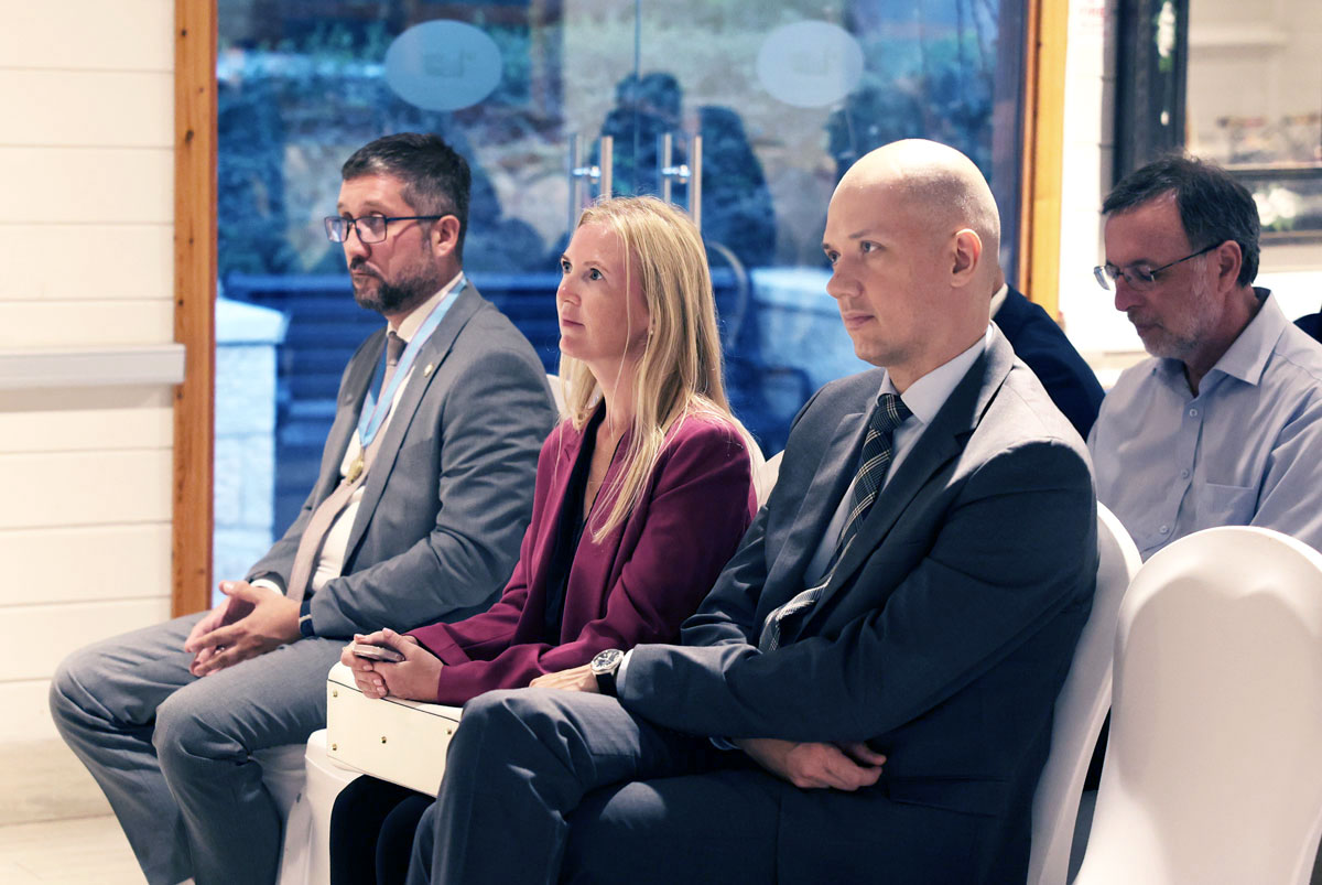 Советник-посланник посольства Российской Федерации в Израиле Евгений Щербанев, выступая с ответным словом, поприветствовал организаторов и участников встречи от имени действительного члена ИППО Посла России в Израиле А. Д. Викторова.