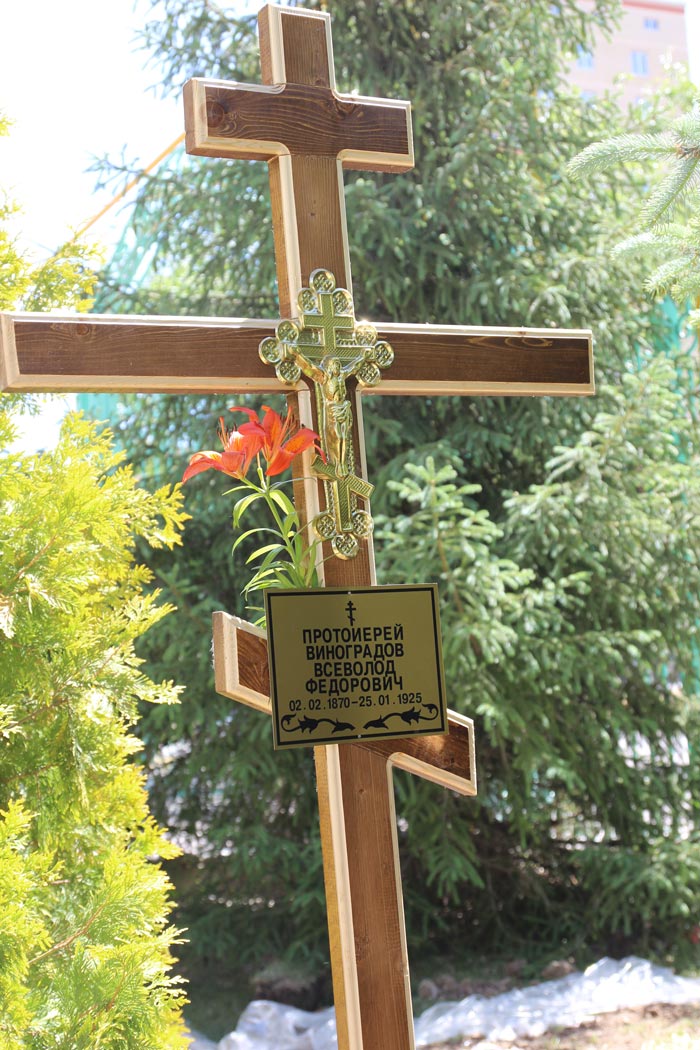 В советские годы могила отца Всеволода Виноградова была утрачена, поэтому крест над могилой был поставлен приблизительно. Но благодаря потомкам священника Всеволода Виноградова, предоставивших фотографию с надгробием, удалось точно определить место захоронения. Так как место погребения находилось на проходе, было принято решение перенести могилу в более благоговейное место. Отец Всеволод Виноградов был членом Астраханского отдела Императорского Православного Палестинского Общества со дня его основания.