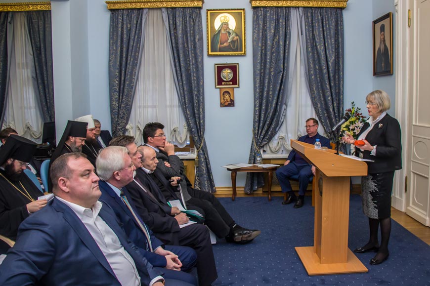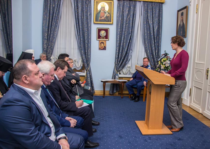 «Это сейчас приоритетная тема для ИППО, нас поддержал в этом Святейший Патриарх, – отметила она, – он, собственно, и нацелил нас на эту деятельность ещё в 2012 году. Сегодня развернулась большая масштабная деятельность на различных влиятельных международных площадках. Силами нашего Общества, которое имеет вековую историю, связи с ближневосточным регионом, нам удаётся вносить конструктив в обсуждение проблем, которое происходит в Совете ООН по правам человека, где у нас есть консультативный статус. Мы активно работаем в Совете Европы, моя последняя поездка в Страсбург в начале этого месяца и участие в ежегодной конференции привели к тому, что мы можем войти в состав Комитета неправительственных организаций при Совете Европы и работать там на постоянной основе. Нас уже знают на этих площадках, знают историю ИППО, знают руководство, знают наши задачи, цели. Сегодня мы также выходим на ОБСЕ, меня включили в так называемый «Московский механизм». Мне как представителю ИППО при поддержке МИДа России, за что я очень благодарна Михаилу Леонидовичу Богданову и другим высоким должностным лицам министерства, продолжать вести общественную дипломатию, что зачастую невозможно сделать официальным путём».