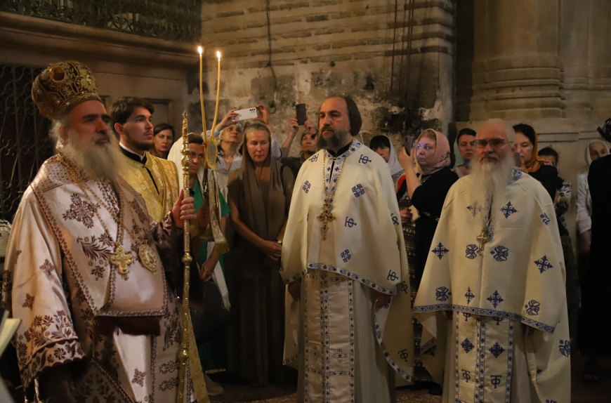 По благословению Иерусалимского Патриарха Феофила богослужение возглавил архиепископ Севастийский Феодосий.