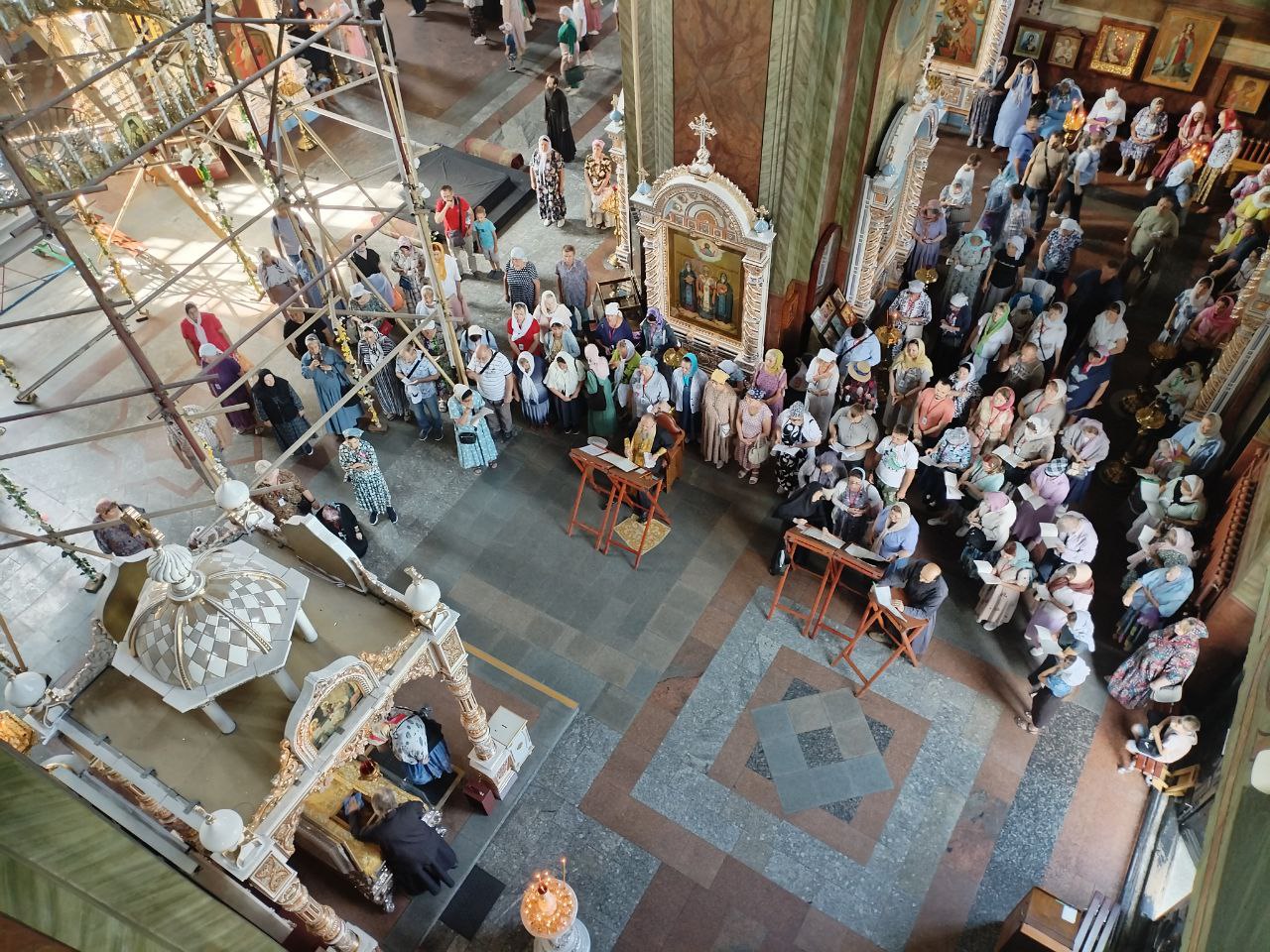 Встретивший группу ИППО клирик кафедрального собора отец Илия рассказал паломникам об истории главного епархиального храма: 22 августа 1845 года была совершено освящение закладного камня, что положило начало строительным работам, которые длились 44 года.