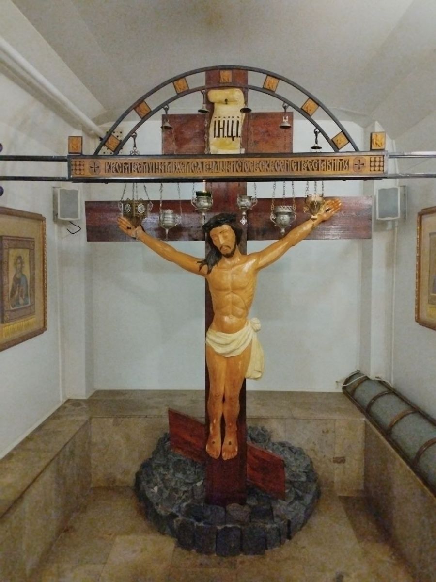 Посетив в расположенном неподалёку от обители скиту собор и нижний храм с часовней Креста Господня, мы отобедали в сестринской трапезной, после чего нескольким паломницам было определено послушание потрудиться на кухне.