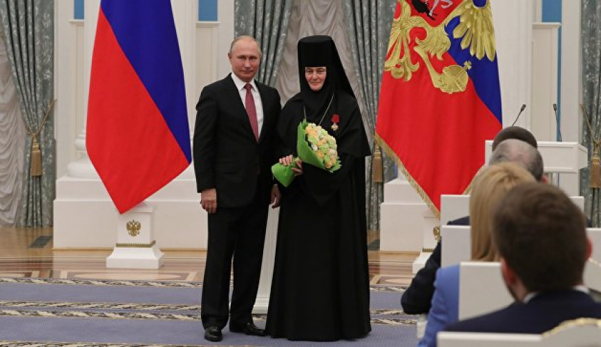 Игумения Феофания получила из рук президента Орден за заслуги перед Отечеством IV степени.