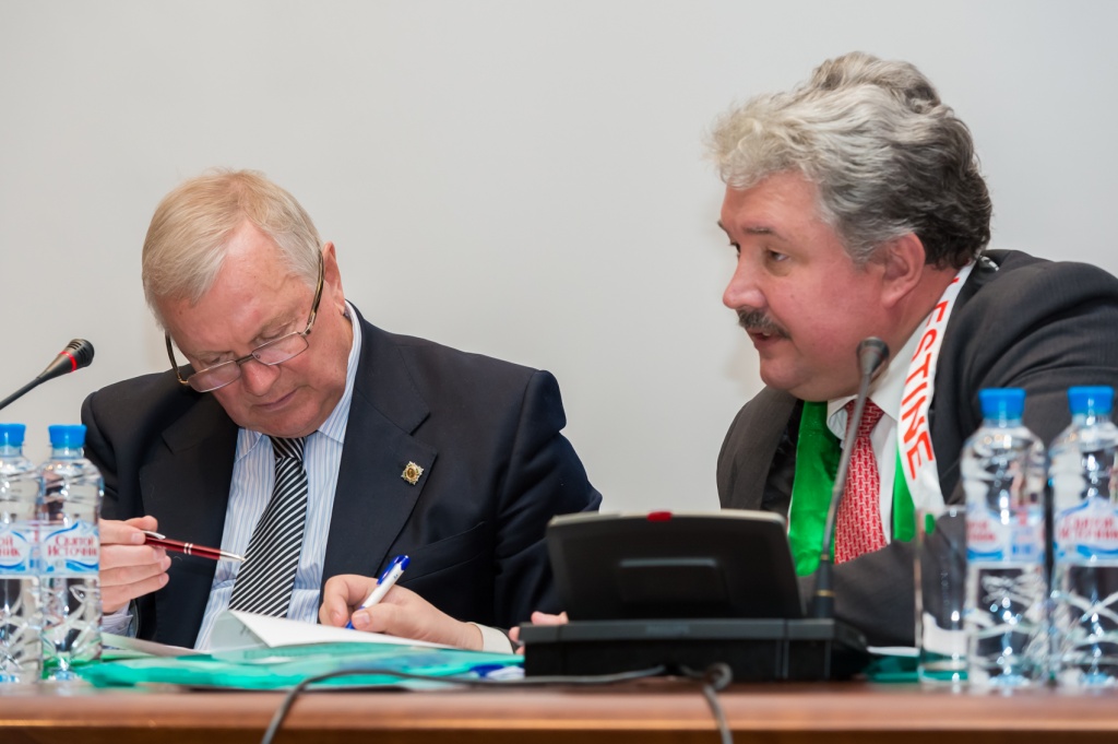В президиуме находились президент «Русский центр «Иерусалим» Сергей Николаевич Бабурин и вице-президенты, Председатель Московского отделения ИППО Сергей Львович Байдаков и член Совета ИППО, и.о.заместителя Председателя Московского отделения ИППО Олег Иванович Фомин.
