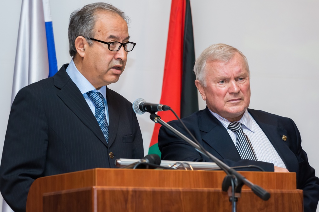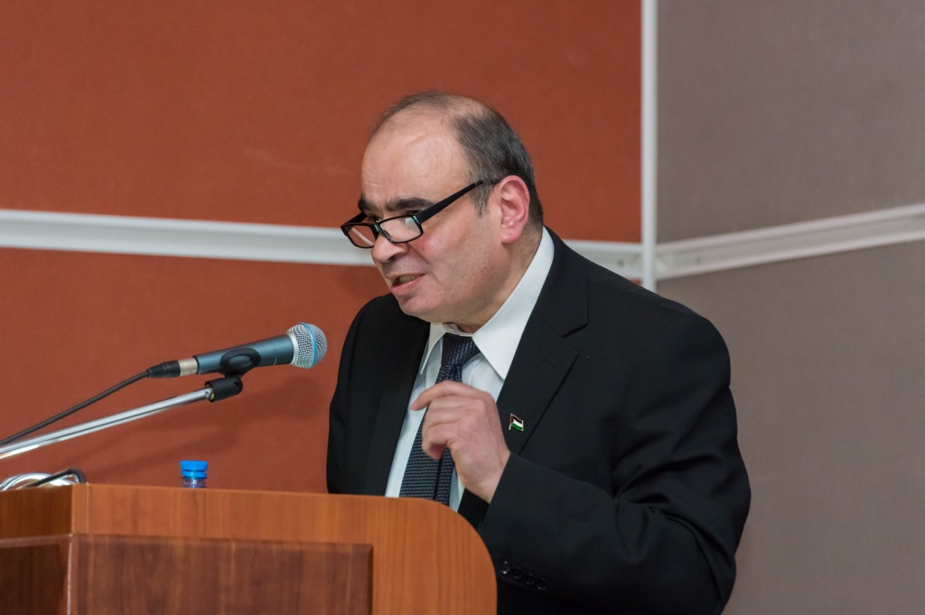 С приветственным словом выступили почётные гости конференции: Чрезвычайный и Полномочный Посол государства Палестина, член ИППО Фаед Мустафа, Посол Королевства Марокко Абделькадер Лешехем, Посол Лиги Арабских Государств в РФ Джаляль Аль-Машта и Президент Ассоциации арабских диаспор, член Московского отделения ИППО Хассан Насралла.