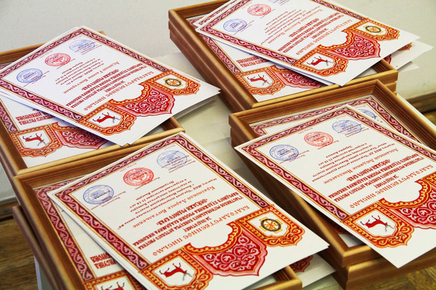 Дипломами и памятными медалями, созданными народным художником России В. Г. Никоновым, награждены 12 авторов, занявших призовые места. Авторы 26 лучших работ отмечены грамотами.