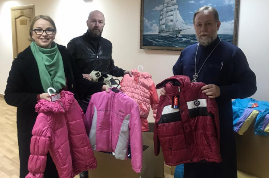 Благотворительная помощь в виде тёплой одежды для многодетных и малообеспеченных семей была передана директору гимназии, члену Нижегородского отделения Императорского Православного Палестинского Общества протоиерею Евгению Худину.