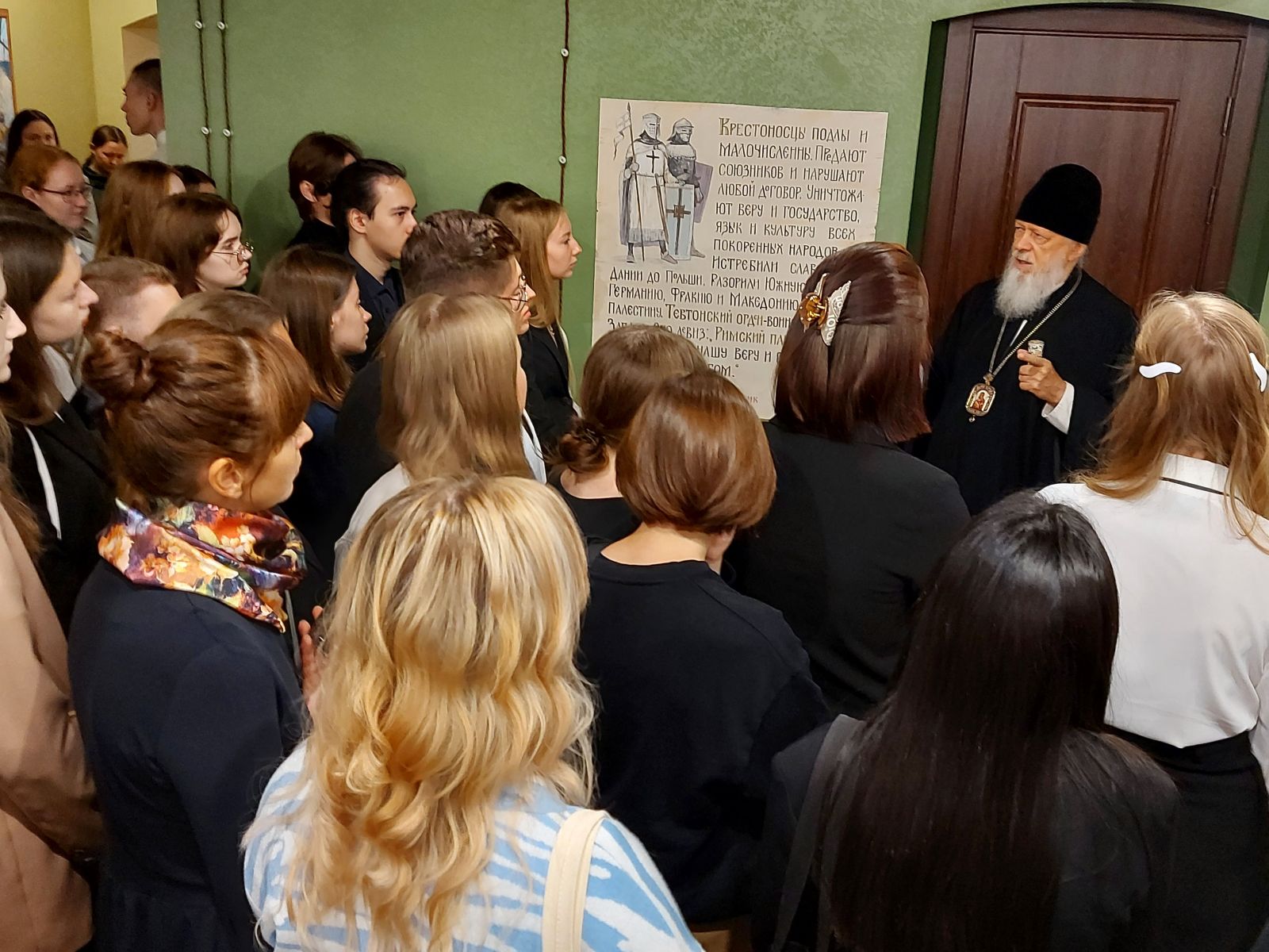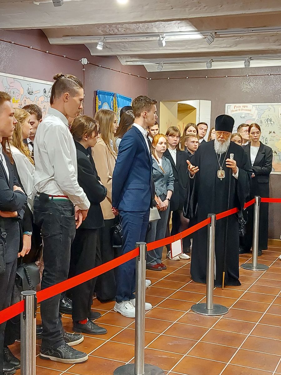 Епископ Городецкий и Ветлужский Августин перед вручением студенческих билетов познакомил первокурсников с историей обители, рассказал об особом значении деятельности Александра Невского как дипломата, политика, воина, русского Святого, провёл экскурсию по залам Духовно-просветительского музея «Александр Невский – национальная слава России».