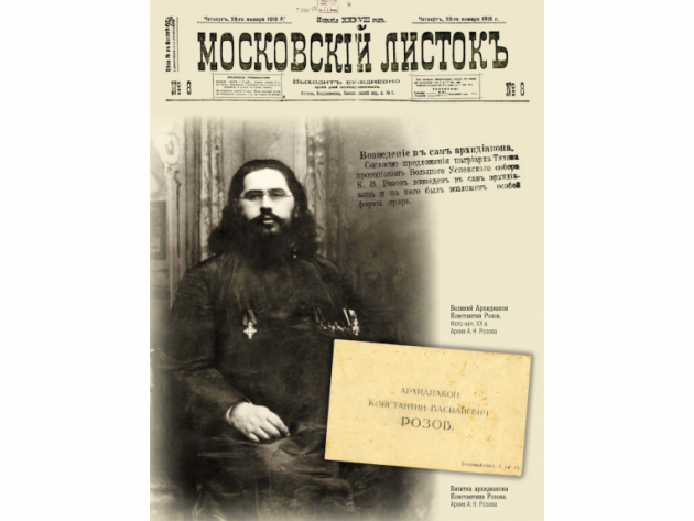 И вот спустя 27 лет, по благословению митрополита Нижегородского и Арзамасского Георгия (Данилова) я «взялся за перо», чтобы постараться изложить под одной обложкой более полную биографию этого замечательного человека. Материал приходилось собирать в разных местах: в Исторической библиотеке города Москвы, в Российском государственном историческом архиве, Государственном архиве Российской Федерации, в Нижегородском и Ульяновском госархивах. Любезно предоставил свои фонды Церковно-археологический музей Московской Духовной академии, где оказалось большое количество подлинных фотографий Константина Розова. Множество фотографий великого архидиакона нашлось и в Издательском Совете Русской Православной Церкви, поскольку именно они в 1994 году, когда отделом руководил митрополит Волоколамский и Юрьевский Питирим (Нечаев), выпустили к 120-летию со дня рождения архидиакона Розова брошюру «Великий архидиакон», написанную его дочерью Л.К. Розовой. Впоследствии, узнав, что Людмила Константиновна Розова передала архив своего отца в фонды Музеев Московского Кремля, я обратился и туда, и так же любезно мне предоставили отсканированные с подлинников уникальные фотографии и документы, ранее никогда не публиковавшиеся. На торжествах 95-летия со дня блаженной кончины Константина Розова на его родине в селе Жданово я познакомился с приехавшим на эти торжества внуком брата Константина Розова — священномученика протоиерея Николая Розова — Александром Николаевичем Розовым, профессором Российской Академии наук, Института русской литературы, ведущим научным сотрудником ИРЛИ.