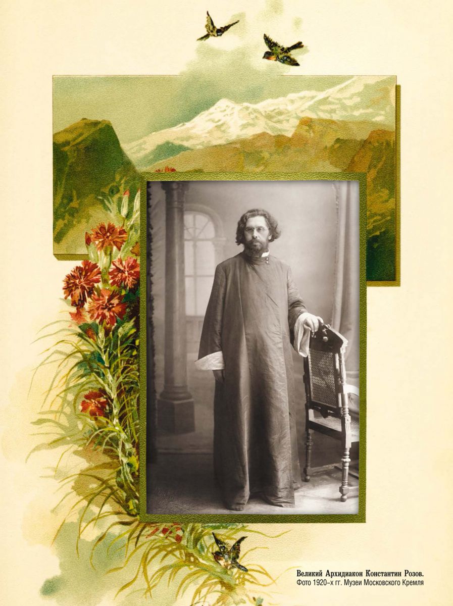По его приглашению я посетил Санкт-Петербург, где познакомился с его архивом и смог сделать с сохранившихся документов и фотографий качественные сканы для будущей книги. Неоценимую услугу в поисках в Государственном архиве Ульяновской области метрических и клировых данных о династии Розовых оказал Пупышев Андрей Михайлович. После статьи, опубликованной в журнале «Фома" за август 2019 года "Великий Архидиакон: человек заставлявший дрожать огонь" за авторством Игоря Цуканова и снабженной уникальными фотографиями К.В.Розова, которые предоставил кандидат исторических наук, доцент, заместитель директора по науке центра Исторической Экспертизы и Государственного прогнозирования при РУАН Борис Григорьевич Якеменко, я встретился с ним в Москве и он любезно предоставил мне для пересъёмки архив архидиакона Константина Розова имеющийся в его распоряжении. Документы и фотографии из этой уникальной коллекции ярко дополнили эту книгу".