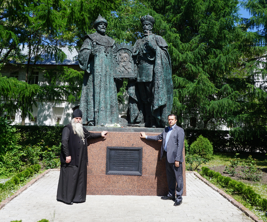 Александр Панин и отец Тихон вознесли свои молитвы у памятного креста, осмотрели памятник двум Государям – Царю Михаилу Фёдоровичу и святому страстотерпцу Императору Николаю II (посвящён 400-летию Дома Романовых), новые экспонаты музея, расположенного в храме преподобного Романа Сладкопевца.