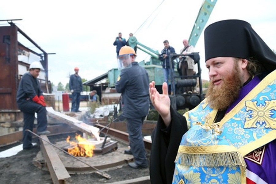 Сейчас новорожденный колокол остывает в земле. Достанут его через полторы недели, полностью изделие должно быть готово к 25 сентября, а освящение намечено на 29 сентября.