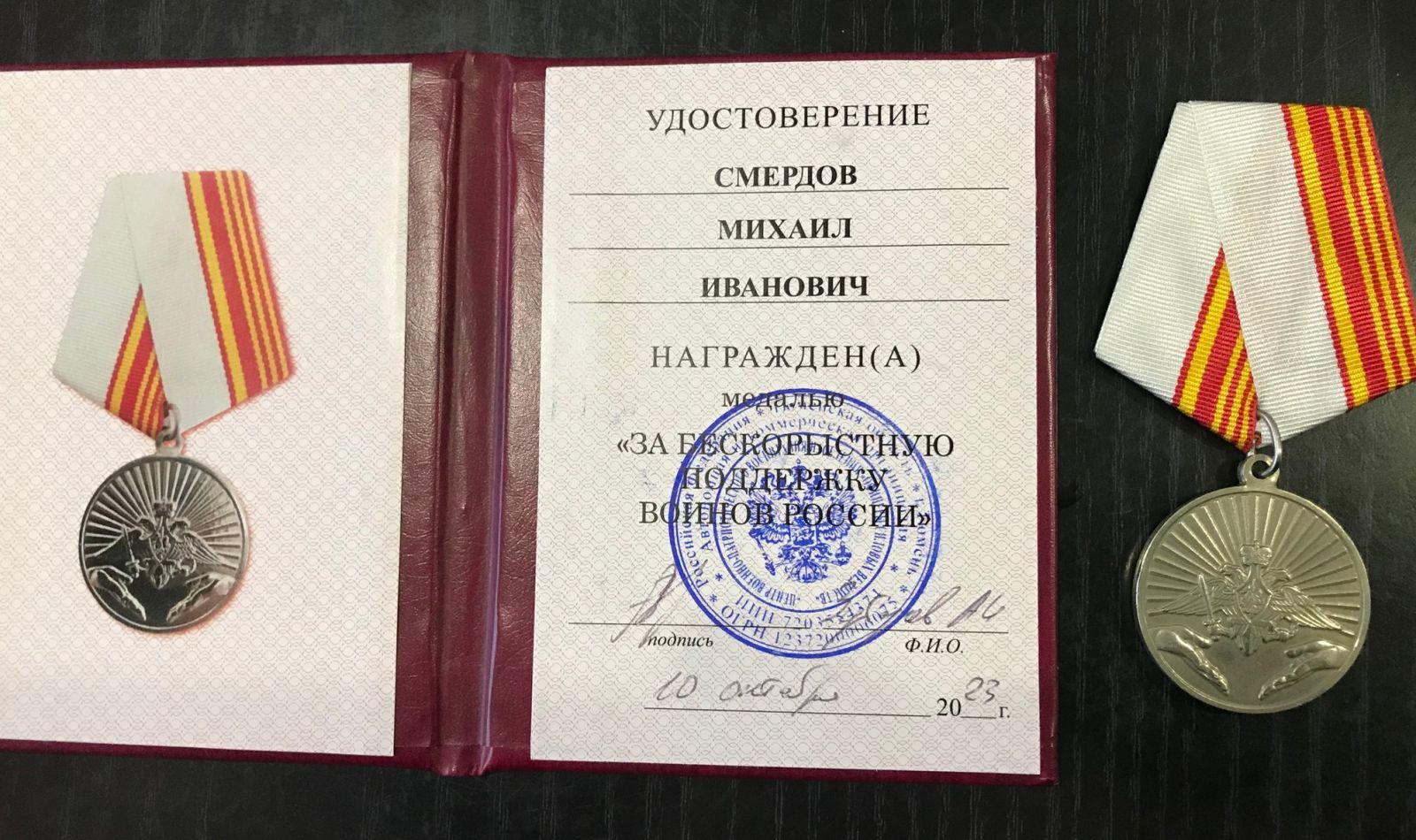 На днях инициативы члена Екатеринбургского отделения ИППО Михаила Смердова были отмечены во время автопробега «Солдату 1941 года». Участники пробега посетили Общественный филиал Центрального музея Победы в Ирбите, где руководители проекта вручили грамоты и благодарности активным участникам акций по отправке гуманитарной помощи в зону специальной военной операции. В частности, действительному члену ИППО Михаилу Смердову вручили медаль «За бескорыстную поддержку воинов России» и грамоту за поддержку воинов, находящихся в зоне специальной военной операции, благотворительность и личный вклад в военно-патриотическое воспитание граждан на благо нашего Отечества и вооруженных сил Российской Федерации.