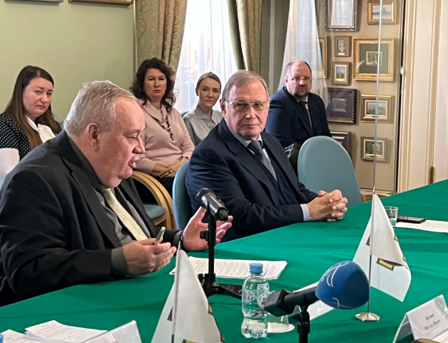 Также участие в работе круглого стола принял Посол по особым поручениям МИД России, руководитель Секции Международного сотрудничества и культурного обмена ИППО, член Совета Общества Олег Озеров.