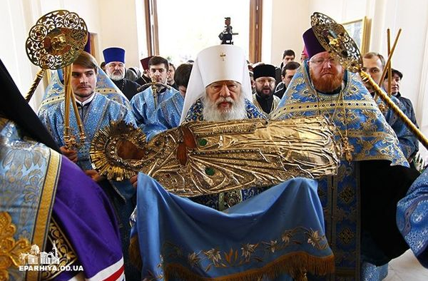 Одесситы во главе с членом ИППО митрополитом Агафангелом помолились у Гефсиманской плащаницы Божией Матери, принесенной со Святой Земли