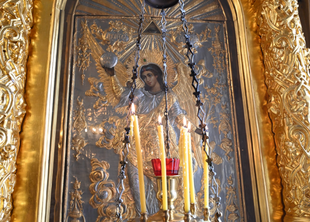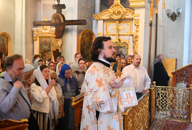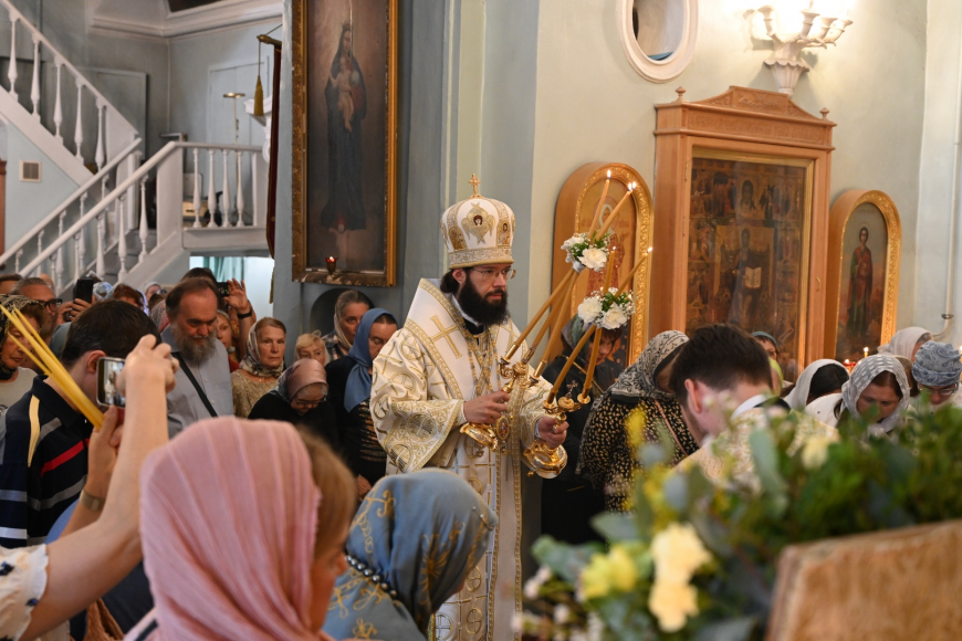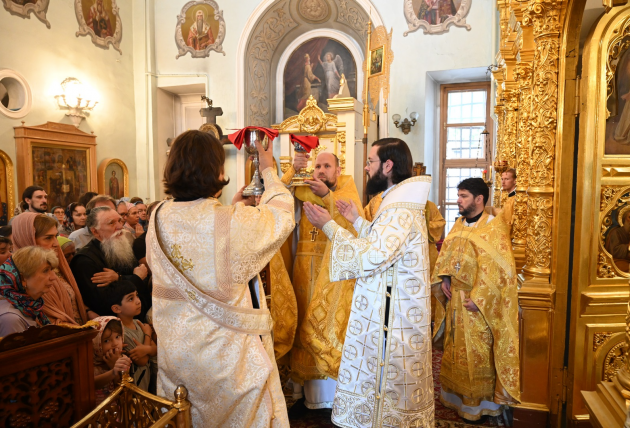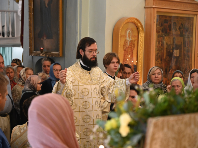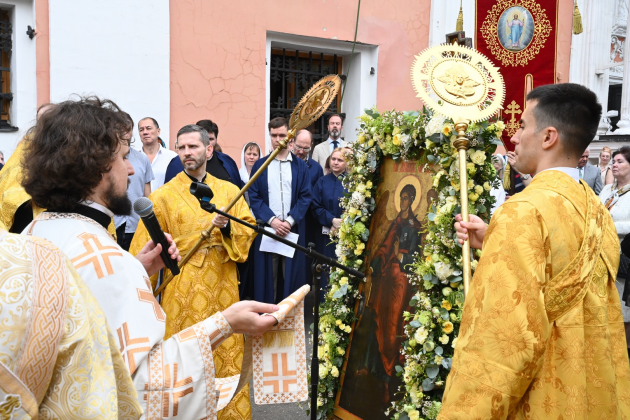 По завершении Литургии молебен святому Архангелу Гавриилу был совершен под открытым небом во дворе храма.