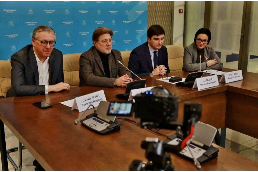 В завершение визита в правительстве Архангельской области с участием председателя правительства Алексея Алсуфьева, ректора академии Ивана Глазунова и руководителя регионального отделения ИППО Владимир Станулевича прошло совещание о сотрудничестве и пресс-конференция для региональных СМИ.