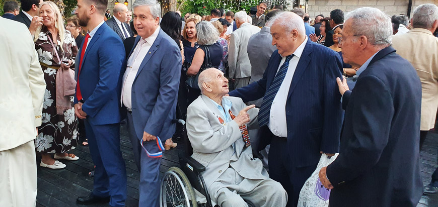 Среди почётных гостей 14 сентября на Сергиевском подворье присутствовали израильский государственный и политический деятель, депутат Кнессета, председатель парламентской коалиции, министр строительства, министр дел Иерусалима и сохранения наследия Зеэв Элькин, Блаженнейший Патриарх Святого града Иерусалима и всей Палестины Феофил III, начальник Русской Духовной Миссии в Иерусалиме архимандрит Александр (Елисов). От имени Российской Федерации собравшихся приветствовал Чрезвычайный и Полномочный посол России в Государстве Израиль Анатолий Викторов.