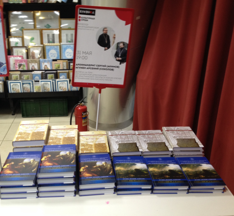 На встрече были представлены переизданные Издательским домом Общецерковной аспирантуры и докторантуры «Познание» монографии профессоров ОЦАД: «Библейская книга Екклезиаста и литературные памятники Древнего Египта», «Библейская книга Екклезиаста и литература мудрости Древней Месопотамии» доктора богословия архимандрита Сергия (Акимова), «Книга пророка Амоса: введение и комментарий» и «Книга Иисуса Навина: историко-экзегетическое исследование» доктора богословия игумена Арсения (Соколова).