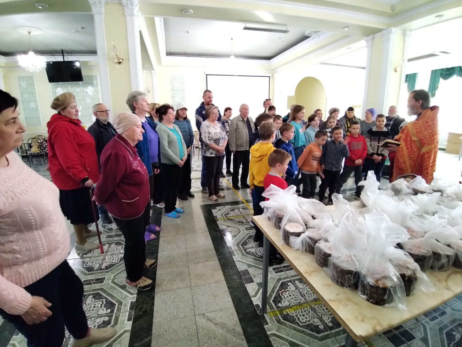Настоятель Крестовоздвиженского храма города Уфы протоиерей отец Роман поздравил всех со Светлым Христовым Воскресением, провел праздничную проповедь о смысле великого праздника Пасхи и освятил угощения. Каждый из присутствующих мог зажечь свечу от лампады с частичкой Благодатного огня, который в воскресенье прибыл в Уфу.