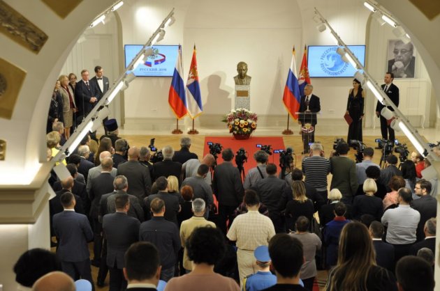К присутствующим на церемонии обратились Чрезвычайный и Полномочный посол Российской Федерации в Республике Сербии Александр Аркадьевич Боцан-Харченко, Президент Республики Сербии Александр Вучич, председатель Правительства Российской Федерации (19 мая – 9 августа 1999) Сергей Вадимович Степашин и руководитель Федерального Агентства «Россотрудничество» Элеонора Валентиновна Митрофанова.