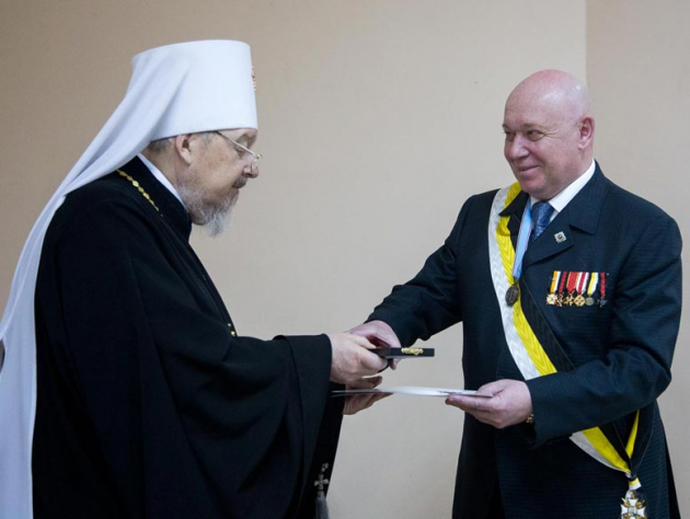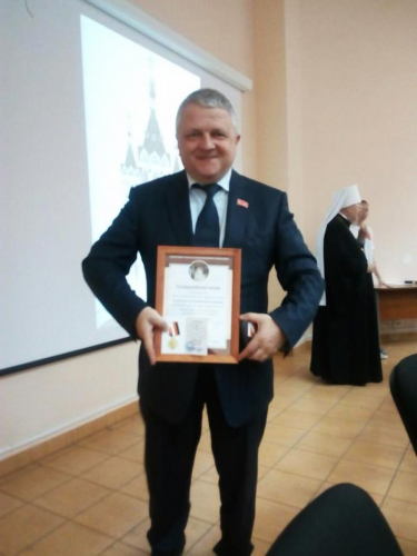 После приветственных слов других членов президиума владыка Пантелеимон наградил медалью «Русская земля» почётных гостей форума и меценатов, среди которых был и активный член регионального отделения ИППО в Красноярском крае Владимир Владимиров, а также, вручил орден Святого Равноапостольного князя Владимира IV степени от имени Главы Российского Императорского Дома Её Императорского Высочества Государыни Великой Княгини Марии Владимировны председателю Красноярского краевого отделения ИППО, предводителю Красноярского краевого Дворянского собрания Сергею Гонюхову.