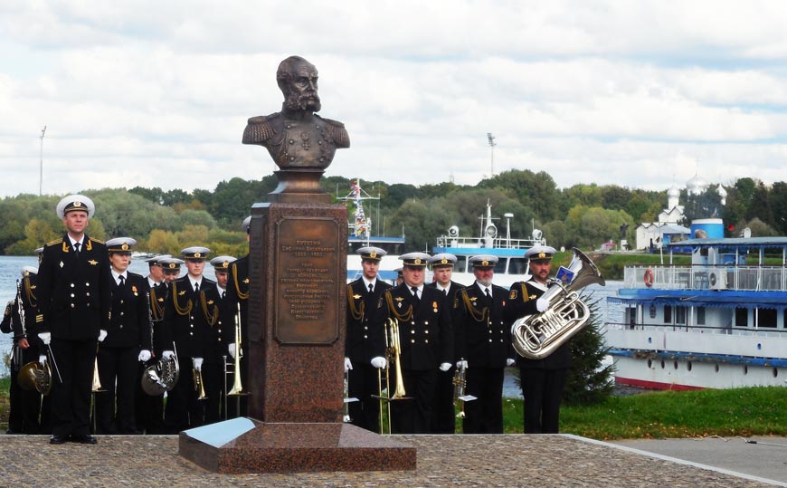 К памятнику Е. В. Путятину под торжественную мелодию в исполнении оркестра состоялось возложение цветов.