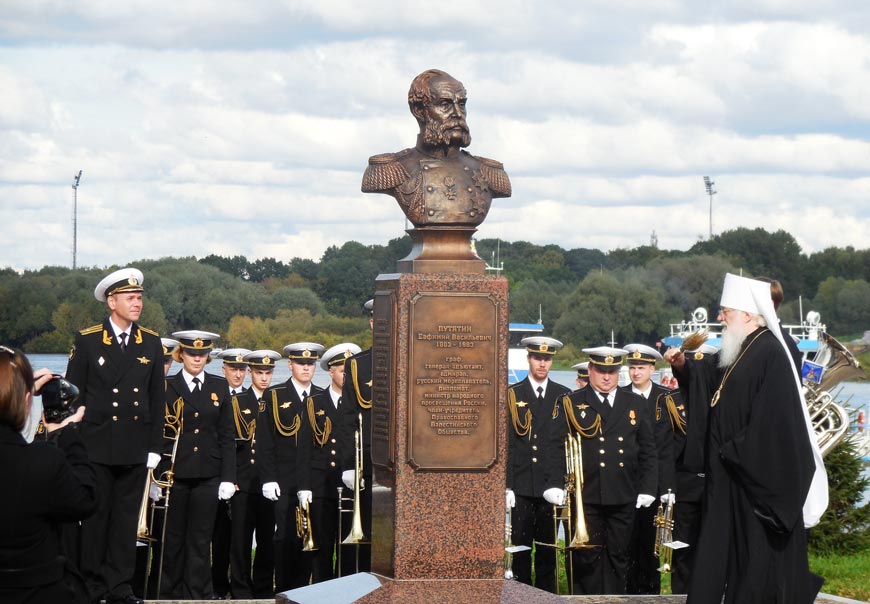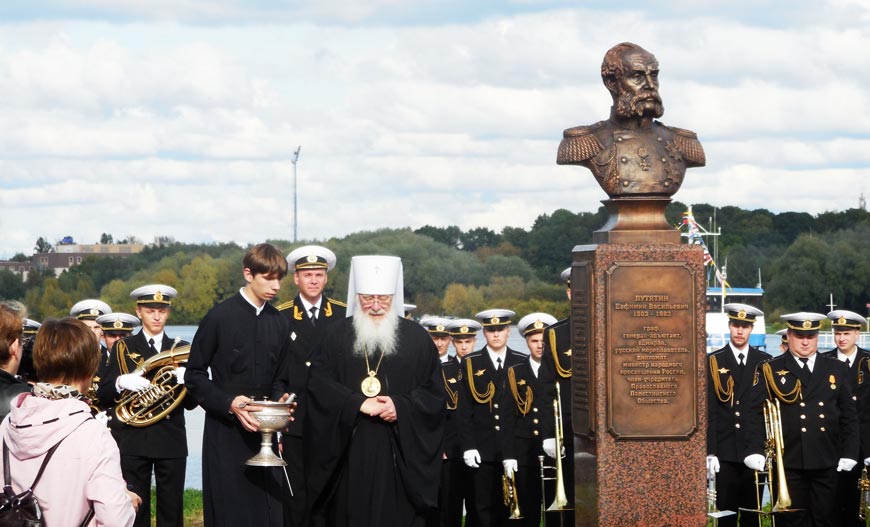 Заместитель председателя Новгородского регионального отделения Императорского Православного Палестинского Общества Александр Борисович Шныров подчеркнул, что адмирал Е. В. Путятин вернулся на Новгородскую землю, которая его воспитала, в праздник зарождения государственности Российской и православный праздник Рождества Пресвятой Богородицы, что очень символично. Он поблагодарил врио губернатора Новгородской области Андрея Сергеевича Никитина, мэра Великого Новгорода Юрия Ивановича Бобрышева и капитана Морского центра Н. Г. Варухина за поддержку, предоставление места для установки памятника и выдачу необходимых разрешений, а митрополита Новгородского и Старорусского Льва за благословение на установку памятника и молитвенную поддержку.