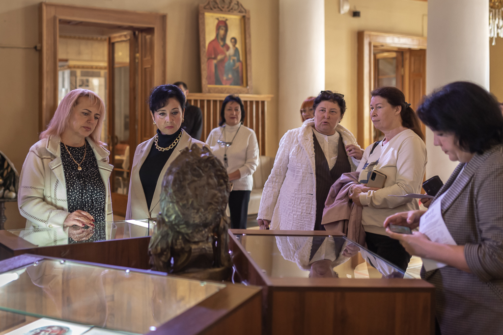 Участники Чтений во время перерыва между пленарным и секционными заседаниями рассматривали экспонаты, общались с представителями Ростовского регионального отделения ИППО: с автором многочисленных представленных на выставке бронзовых скульптур, изображающих события Новозаветной истории, святых Православной Церкви и великих писателей нашей страны – заслуженным художником Российской Федерации, академиком Российской академии художеств Сергеем Исаковым и заместителем руководителя регионального отделения Общества Александром Шияновым. Активисты регионального отделения ИППО поделились в шахтинцами своими впечатлениями о паломничестве на Святую Землю.