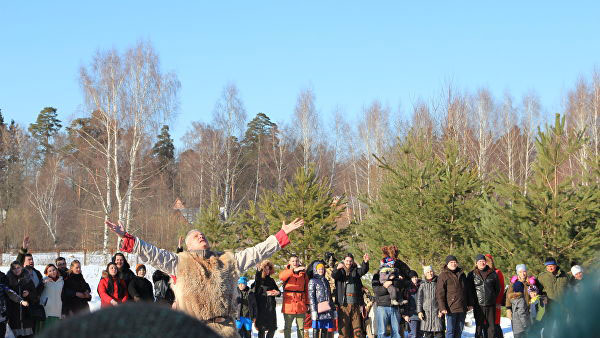 © РИА Новости, Антон Скрипунов. Жрец совершает обряд славления предков на праздновании языческой Масленицы (Комоедицы) в деревне Турейка Наро-Фоминского района Московской области