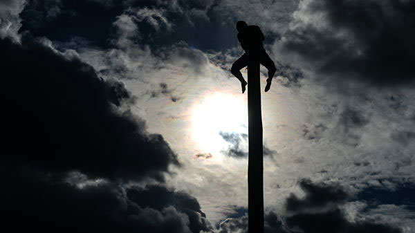 © РИА Новости, Владимир Астапкович. Мужчина лезет на столб во время масленичных гуляний в парке Горького в Москве