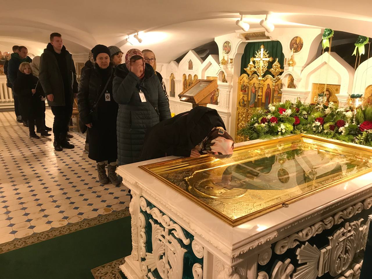 Посетили паломники и Смоленский храм, в строительстве которого посильное участие принимала блаженная Ксения и в котором особо почитается образ Пресвятой Богородицы «Смоленская»; и храм Воскресения Христова, недавно освященный Святейшим Патриархом Московским и всея Руси Кириллом.