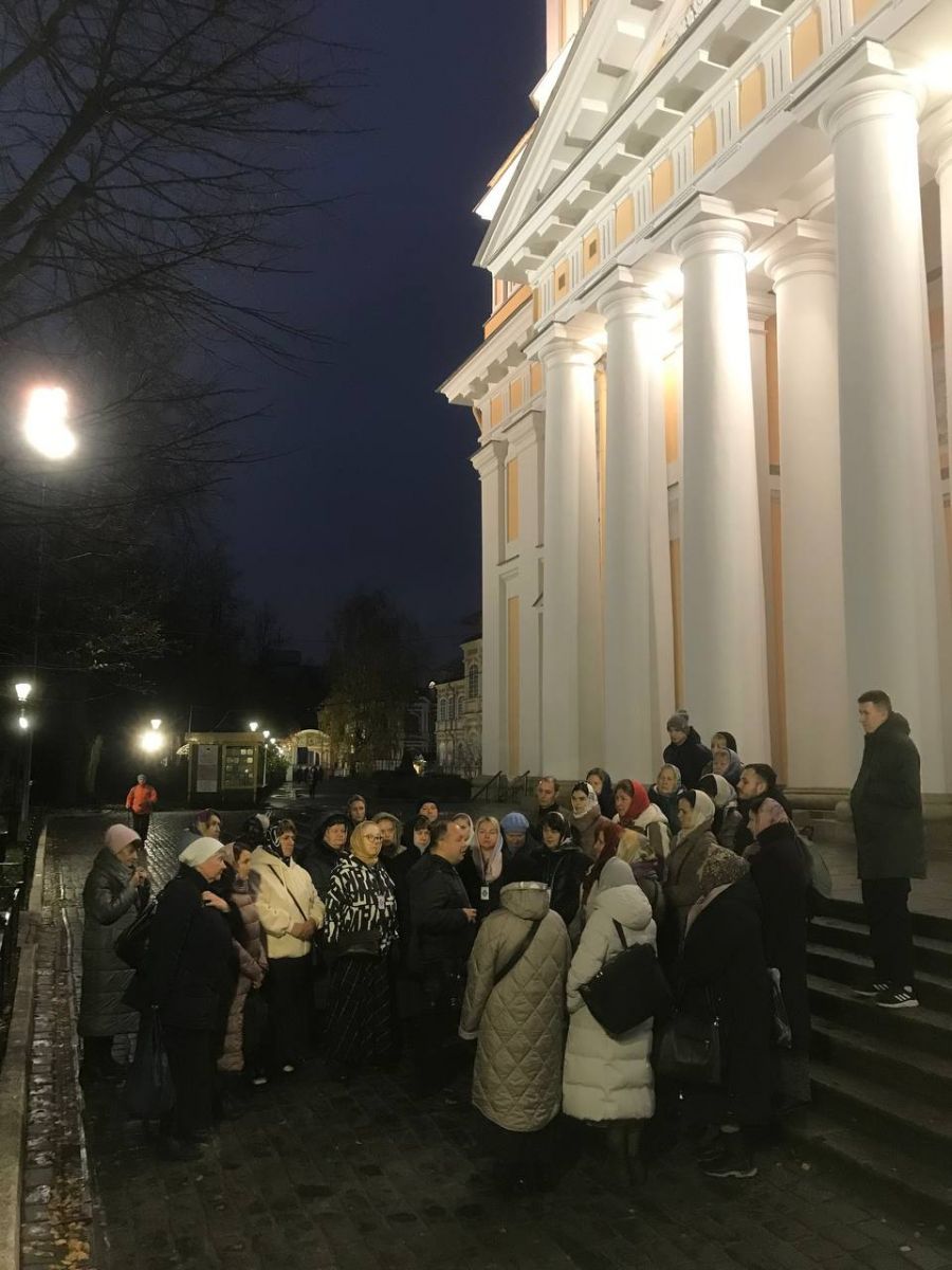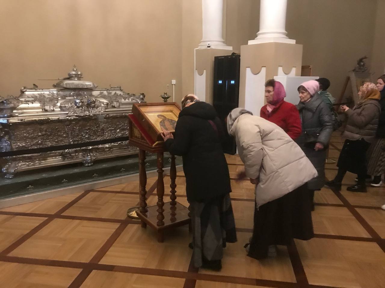 Во второй половине дня богомольцы посетили Иоанновский монастырь на Карповке, где поклонились мощам святого праведного Иоанна Кронштадского, посетили верхний храм в честь Двенадцати апостолов и осмотрели музейную экспозицию, посвященную всероссийскому святому пастырю.