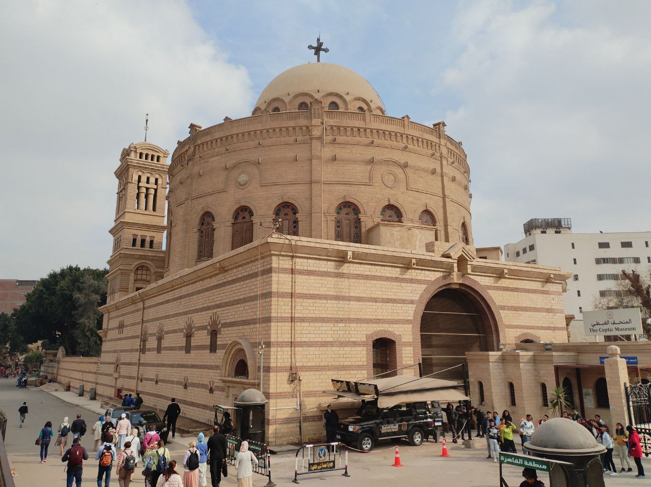 Посетив монастырский комплекс в Фустате и поклонившись мощам святых апостолов Марка, Луки и Павла, первомученика архидиакона Стефана, святителей Афанасия Великого, Лазаря Четверодневного и Иоанна Златоустого, великомученика Феодора Стратилата и других вселенских святых, паломники отправились в церковь Божией Матери (IV в.). Древняя по времени постройки и самобытная по архитектуре, чем и объясняется её название ("Подвешенная", "Висячая"), эта церковь хранит в своих стенах частицы Креста и Гроба Господня, а также небольшую часть Пояса Пресвятой Богородицы, мощи преподобного Онуфрия Великого и Иоанна Предтечи, мучеников Космы и Иоанна, Кирика и Иулиты.