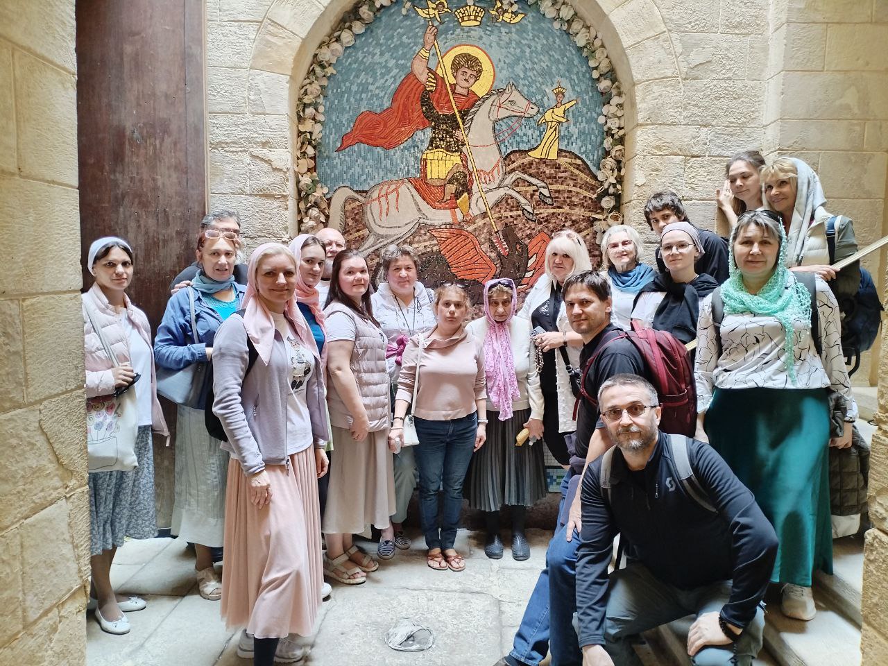 В православном соборе Георгия Победоносца богомольцы посетили темничную камеру, в которой был заточён арестованный великомученик; увидели столп бичевания, к которому он был прикован; орудия пыток.