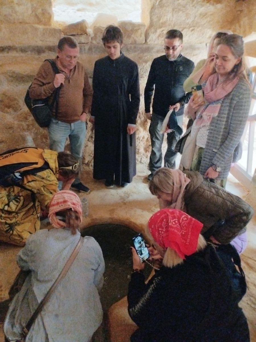 В четвертый день паломничества богомольцы из Барнаула, Екатеринбурга, Калининграда, Москвы и Санкт-Петербурга посетили с утра обитель, основанную преподобным Павлом Фивейским в V веке. Радушно встретивший паломников иеромонах Ефрем сопроводил нас в храм, устроенный в пещерной келье преподобного Павла: здесь у мощей фивейского подвижника протоиереем Георгием Крейдуном был совершен молебен. Затем нам были показаны средневековая мельница, масличный пресс и братская трапезная. Из источника преподобного Павла паломники набрали чистейшей воды, столь необходимой в путешествии по пустыне.