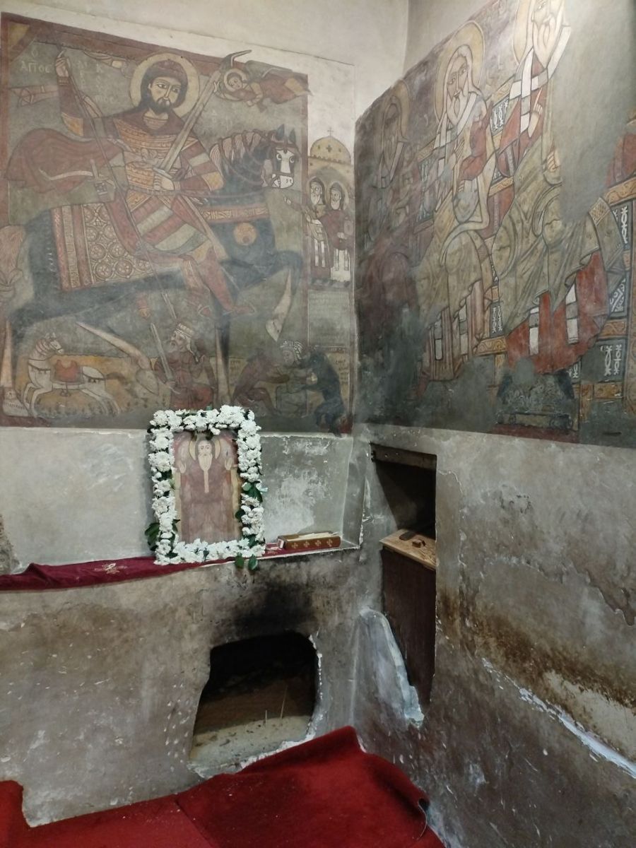 Нашу группу встретил убиленный сединой, почтенных лет старец - иеромонах Руис Антониос, который поведал гостям из России об истории монастыря. В храме преподобного Антония богомольцы пропели "Отче наш", тропарь, кондак и величание основателю обители; осмотрели фрески V-XIII вв. и почтили место погребения преподобного Антония Великого.