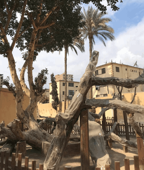 Следующая остановка была сделана в каирском районе Матария: здесь на участке, принадлежащем Коптской Церкви, растёт дерево, под кроной которого отдыхало Святое семейство. В одной из часовен сохранилась каменная колода, использовавшаяся, согласно местному преданию, Божией Матерью для бытовых нужд. Существует здесь же и святой источник.
