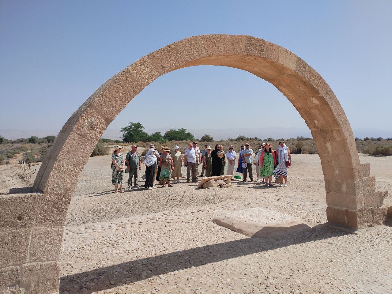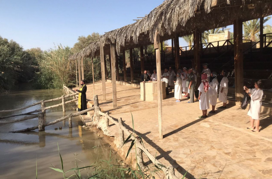 Первая остановка была сделана на берегу реки Иордан. Прочтение соответствующего зачала из Евангелия напомнило нам о проповеди Иоанна Крестителя и призвании Спасителем первых учеников.