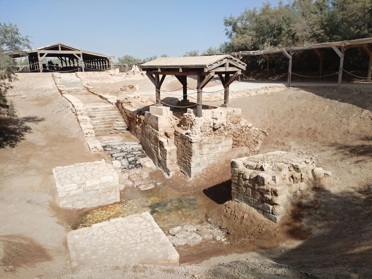 Место Крещения Спасителя отмечено мраморной колонной