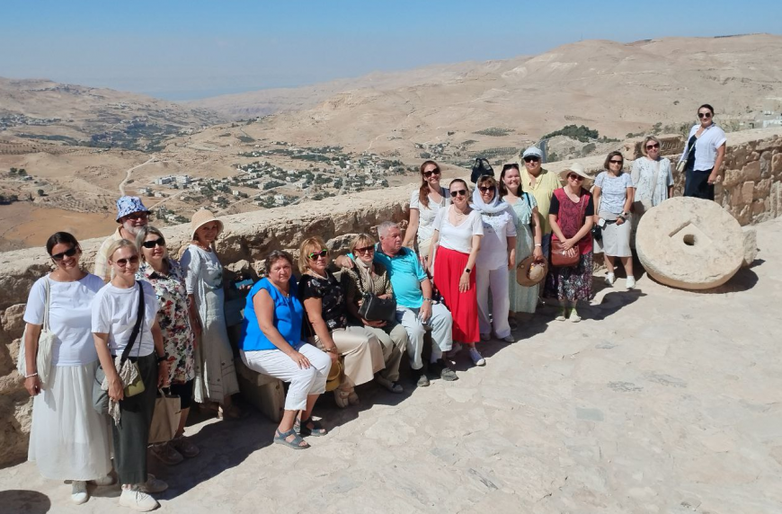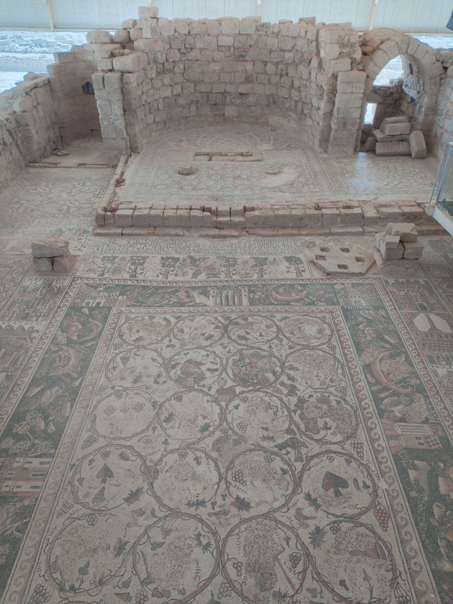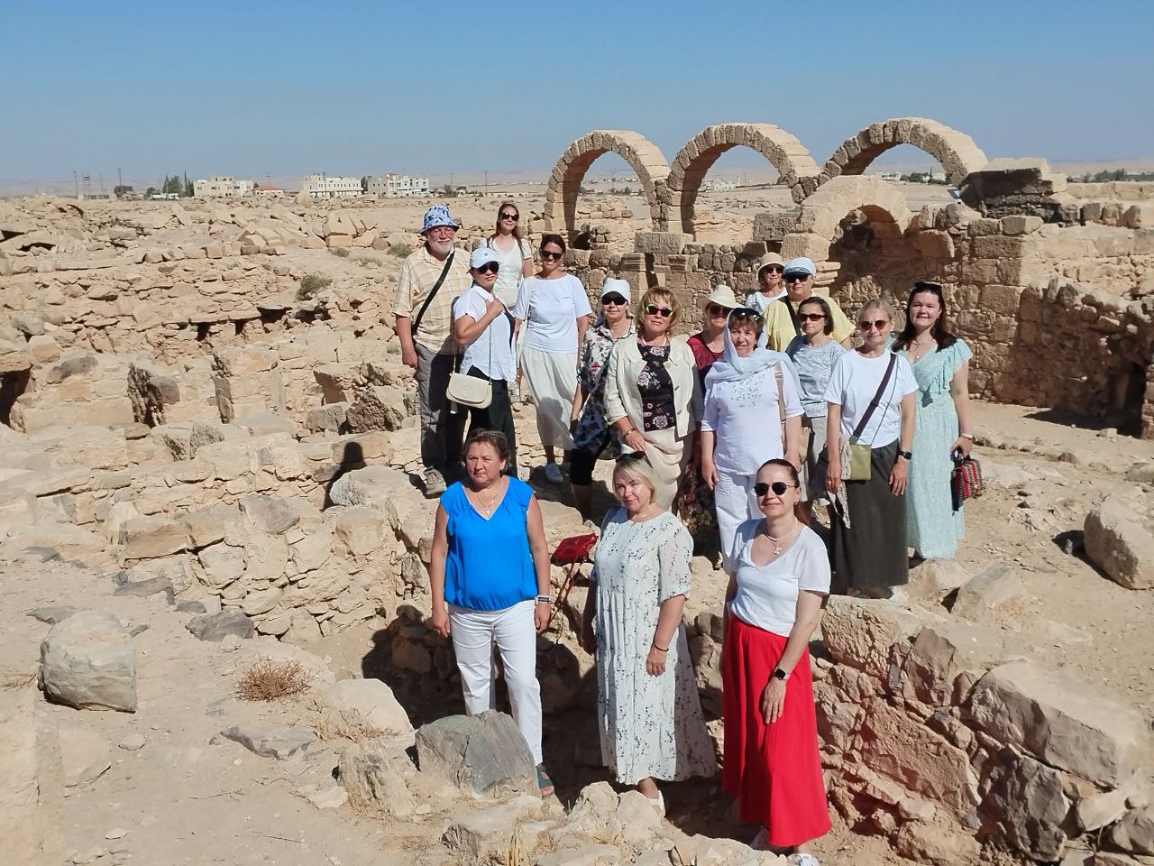 Сначала мы осмотрели руины храмов VI-VIII вв. в Умм эр-Рассас. Самый большой храм этого археологического комплекса датируется 785 годом и посвящен первомученику архидиакону Стефану. В этой церкви сохранилась напольная мозаика, увековечившая названия нескольких городов, расположенных на территории современной Палестины, Иордании, Израиля и Египта. Цветопись мозаики, тонкость работы, сюжеты изображений восхитительны и прекрасны.