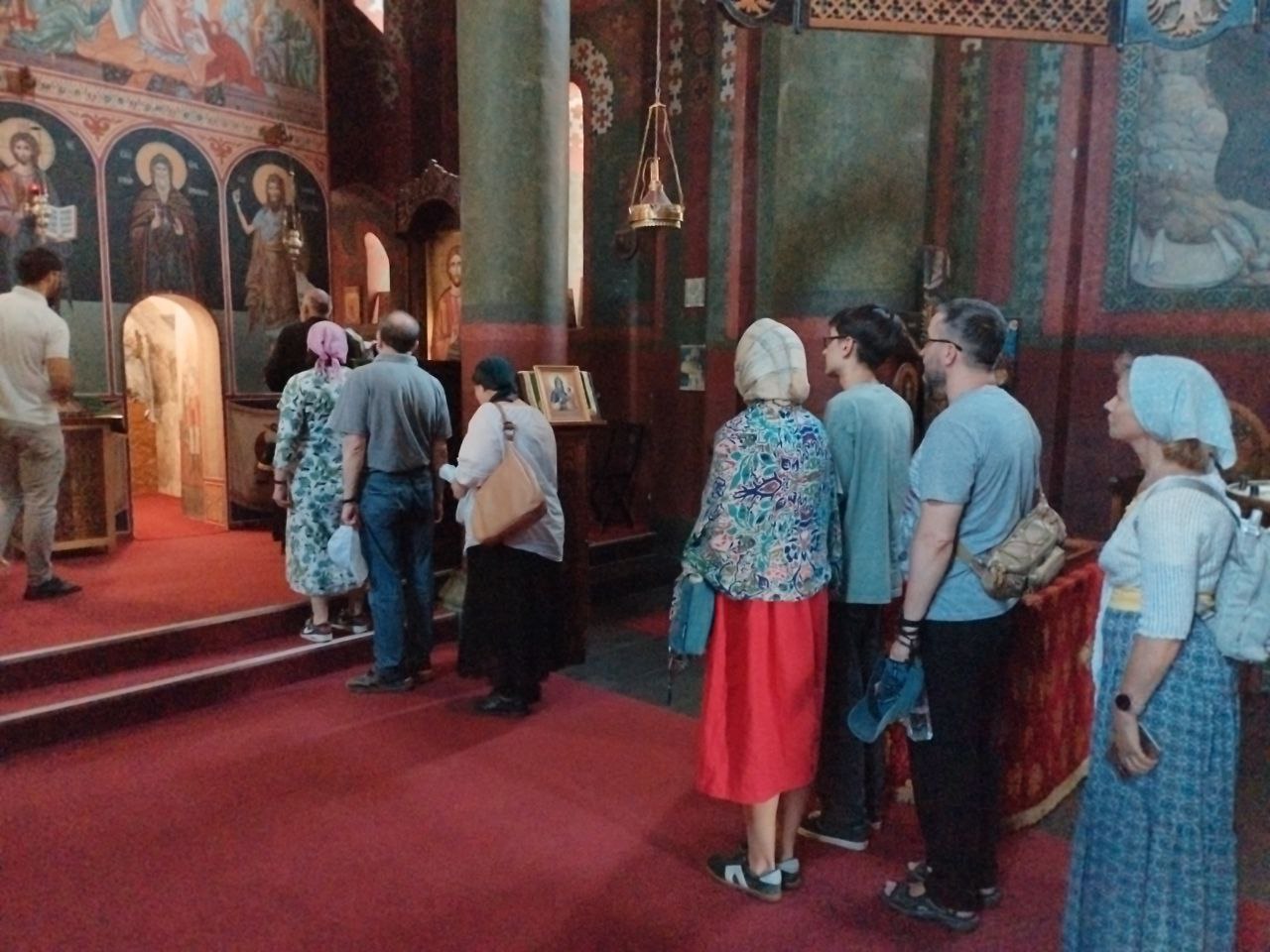 Утром богомольцы посетили собор святых равноапостольных Константина и Елены, расположенный в парке святого Саввы: храм новый, еще не завершена роспись стен. В северной части, внизу у солеи, имеется ковчег с частицами мощей, в том числе некогда проживавших в Нише царицы Елены и ее сына Константина.