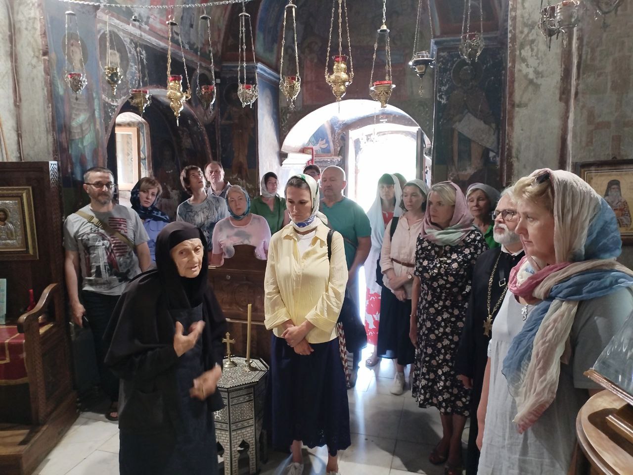 Встретивший паломников в Троицком мужском монастыре монах Симеон поведал гостям из России о славных и трагичных страницах монастырской истории, о том, как случайно обрели в 2006 году мощи святого князя Стефана Лазаревича и о том, что "благочестивые" туристы продолжают оставлять "мемориальные" надписи на фресках XIV века.