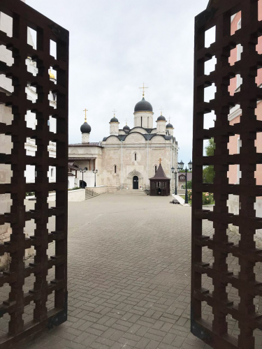 Затем паломники поклонились почивающим в Знаменской церкви мощам основателя обители – преподобного Давида, игумена Вознесенского, Серпуховского чудотворца. В сопровождении насельника монастыря мы посетили соборы Вознесения Господня и Всемилостивого Спаса, а также Всехсвятский храм в здании монастырской трапезной.