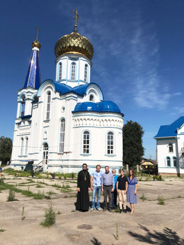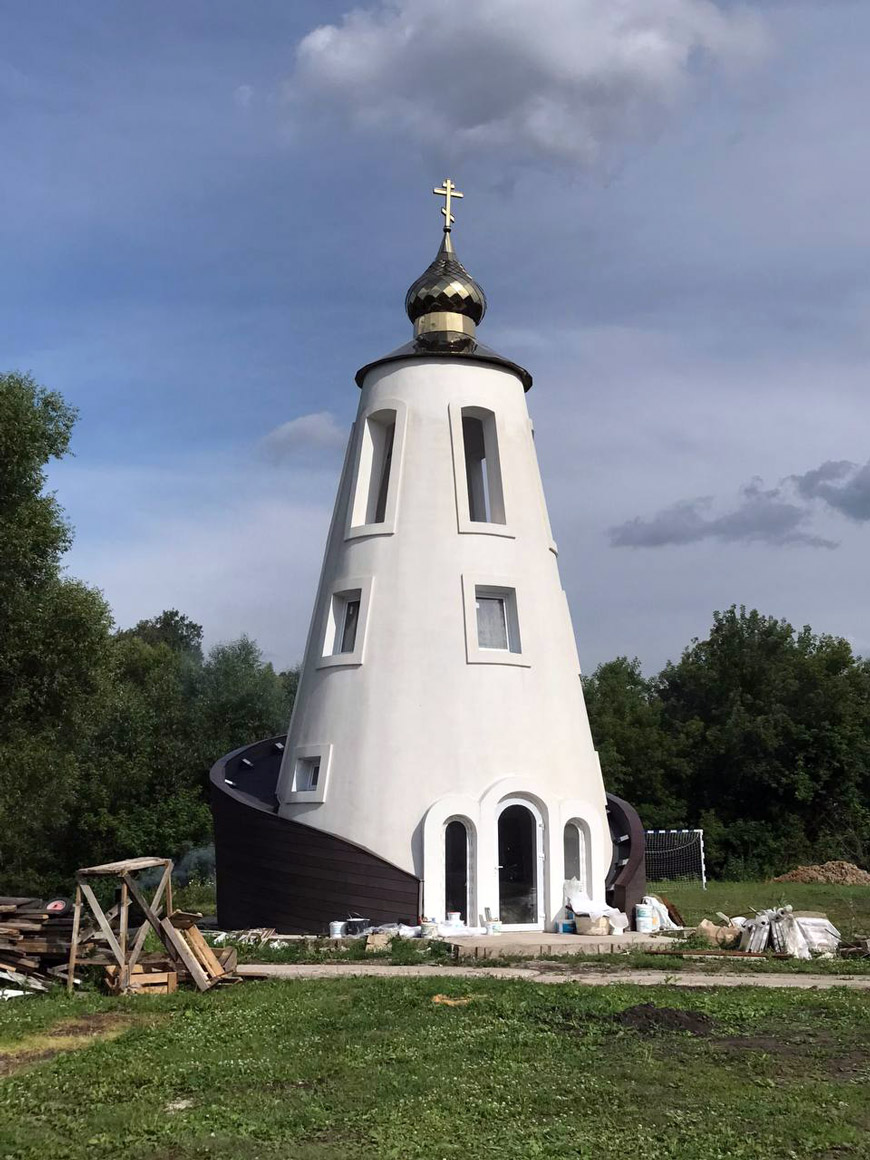 Во второй половине дня мы посетили строящийся храм в честь святителя Митрофана Воронежского: расположенная в удивительно живописном месте у излучины реки Красивая Меча и рядом с речными порогами, церковь имеет необычную форму – в ее архитектуре можно увидеть и маяк, и нос корабля, и парус. При храме имеются корпуса для организации летнего отдыха для детей и подростков. Этот интересный и полезный проект осуществляется на средства и по инициативе тульского благотворителя И.В. Крюкова.
