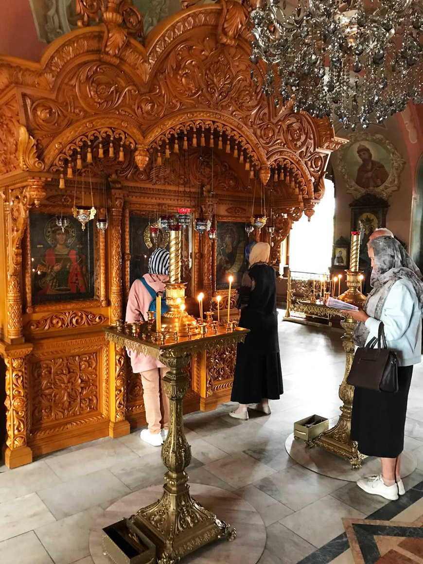Паломничество началось с молитвы за Божественной литургией в Никольском храме Вознесенской Давидовой пустыни.