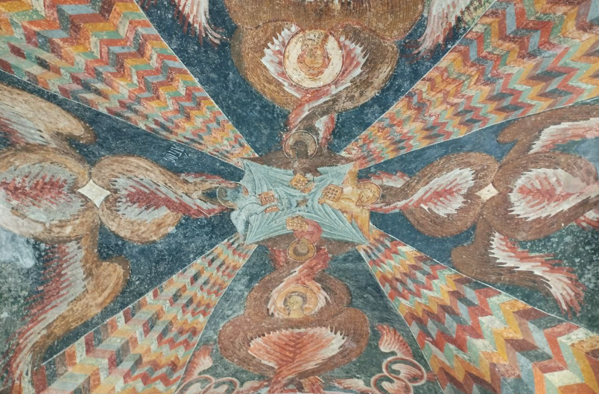 Затем все вместе мы посетили бывший Софийский кафедральный собор (1238-1263 гг.), в котором сохранились большие фрагменты настенных и подкупольных росписей. В притворе - "Страшный суд", но границы самого изображения значительно шире стены: фигуры грешников и праведников простираются на соседние стены и свод.