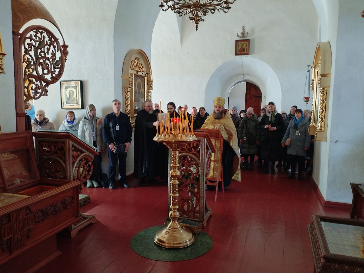 Но, конечно, не ради еды посещают верующие храмы и монастыри. Главное в паломничестве – это молитва перед святынями: молебен перед мощами святого праведного воина Феодора Ушакова, преподобных Феодора и Александра Санаксарских совершил наместник обители архимандрит Иннокентий. Строго и молитвенно звучали церковные песнопения в исполнении братского хора. Получив благословение на достойное прохождение великопостного поприща и краткое наставление от отца Иннокентия, паломники направились в Темников.
